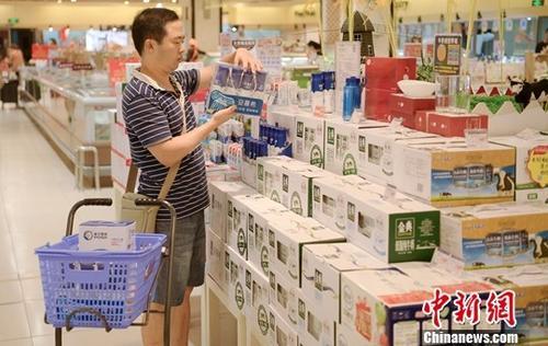 资料图:超市内民众正在挑选奶制品。中新社记者 刘忠俊 摄
