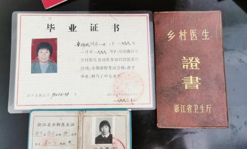 这些旧证件标注的核发时间从八十年代起至千禧年后都有。它们仿佛记录着鲁阿凤在医疗资源匮乏的年代,背着一个药箱走遍农村角落,为邻里乡亲看病问诊。