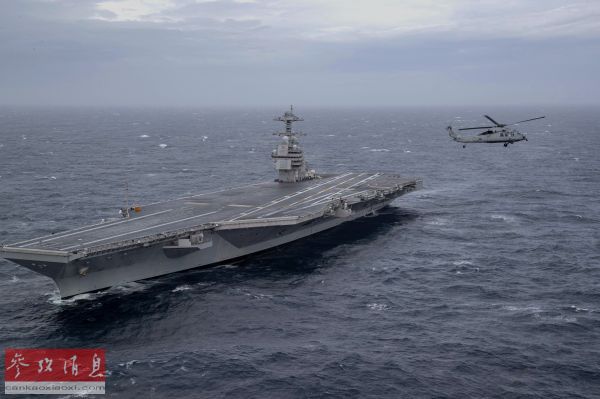 正在进行海试的美海军“福特”号航母。(美国海军学会新闻网站) |