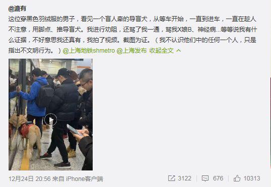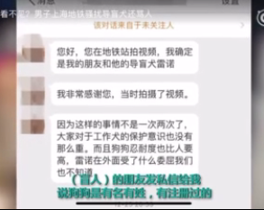 原标题:上海地铁一男子多次骚扰导盲犬,女孩制止被骂了一路