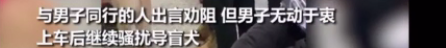 一同排队的乘客实在是看不下去了,纷纷劝说男子:导盲犬在工作,你一直骚扰它干什么?