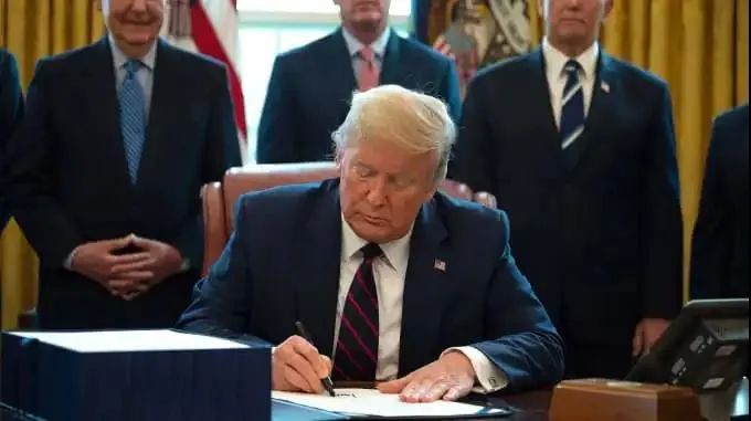 美国总统特朗普正式签署2万亿美元经济刺激法案