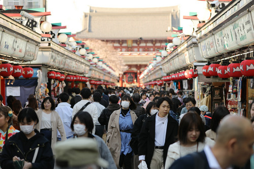 资料图片:3月25日,在日本东京浅草,部分行人戴口罩出行。新华社记者 杜潇逸 摄 |