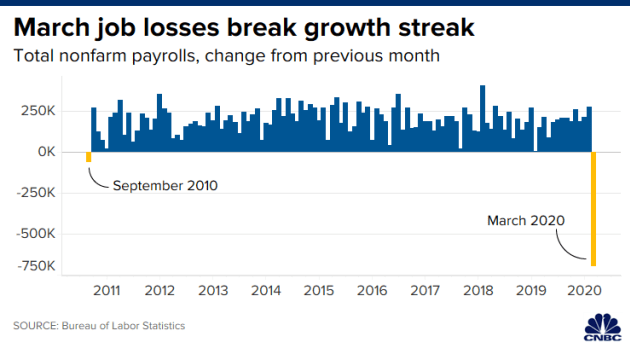 美国劳工部周五公布的数据显示,3月份美国非农就业人数减少了70.1万人,这只是开始显示冠状病毒危机造成的经济损失。
