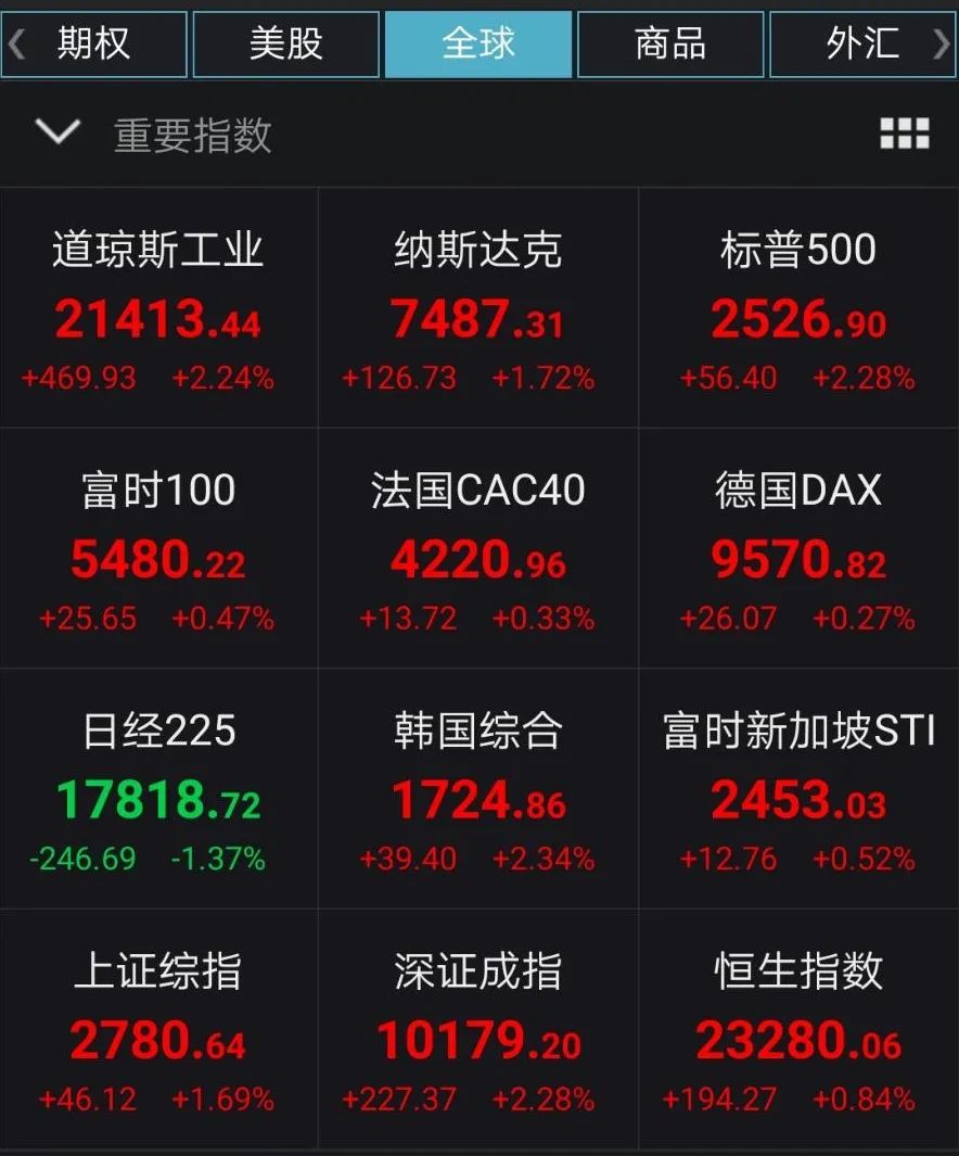 隔夜欧美股市普涨,国际油价飙升带动风险资产全面上涨。美油盘中一度涨逾30%,布油盘中一度涨逾45%。道指收涨逾460点,纳指涨1.72%,标普500指数涨2.28%。石油股普涨,雪佛龙涨11.11%,埃克森美孚涨7.62%。欧股集体收涨,德国DAX指数涨0.27%,法国CAC40指数涨0.33%,英国富时100指数涨0.47%,欧洲油气指数收涨逾5%。
