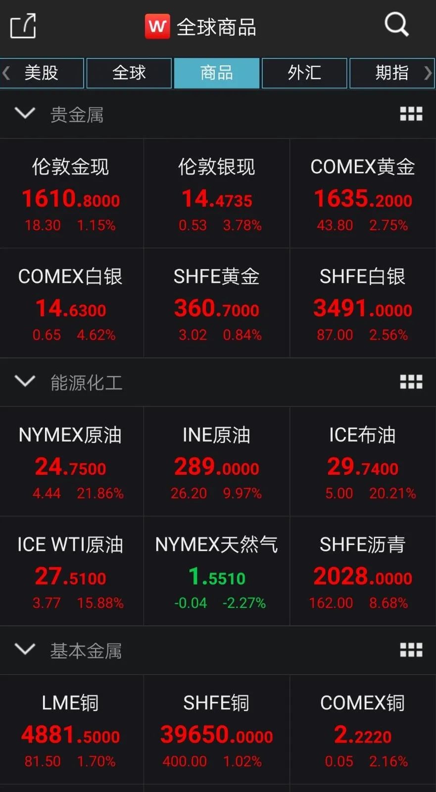 截至4月2日收盘NYMEX原油期货收涨21.86%报24.75美元/桶,创两周以来新高。布油收涨20.01%,报29.69美元/桶,创历史最大单日涨幅,盘中一度涨逾45%。