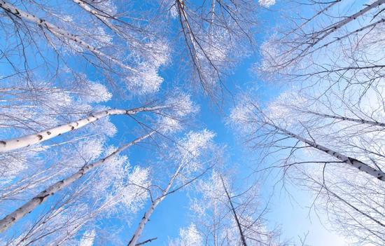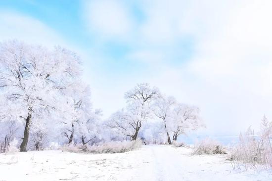 来雾凇岛看雾凇是靠运气的,玉树琼花般美艳却娇嫩,等到太阳出来温度升高,雾凇就会消融殆尽,枝头又恢复灰暗的色彩。