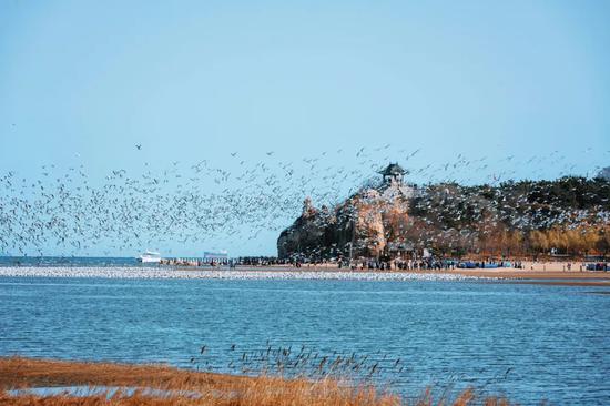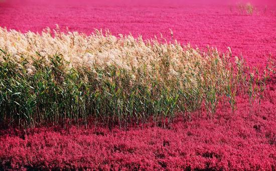 这里有碧波浩渺的苇海,数以万计的水鸟和一望无际的浅海滩涂,成为一处自然环境与人文景观完美结合的纯绿色生态旅游系统,被喻为拥有红色春天的自然景观。