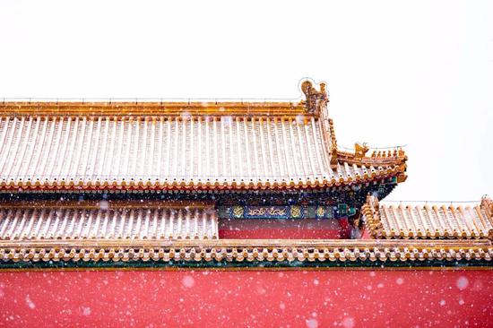 一弯新月划过精致的角楼,给高墙内洒下一片朦胧昏黄的光,故宫里显得神秘而安静。