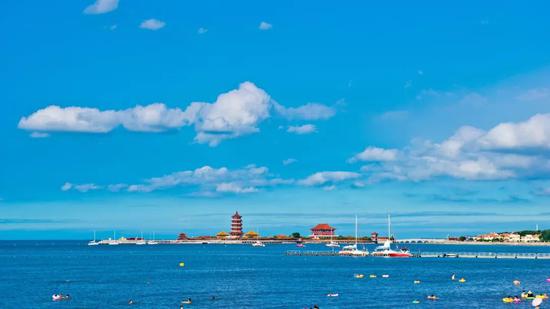 澄碧无涯的大海,喷薄而出的朝阳,蜿蜓如带的金海滩,碧波荡漾的河流,茂密繁盛的丛林,恬静秀美的湿地,峰峦叠翠,海鸟啁啾,红顶素墙,这就是北戴河。