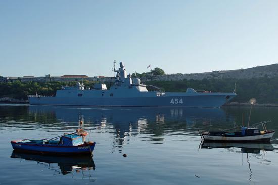 22350型以4500吨级不算大的吨位(满载实际上5400吨)拥同级别战舰中最强悍的对海、对陆打击能力,16单元UKSK型垂发,即可发射“口径”对陆攻击巡航导弹和“宝石”超音速反舰导弹,还可以发射最新的“锆石”高超音速导弹,“卡萨托诺夫海军上将”号最近就测试了这种“杀手锏”武器。