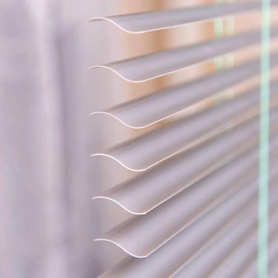 百叶帘的遮光性能虽然一般,但它的扇叶能自由调节遮光量和遮挡高度,切换室内的明亮程度。
