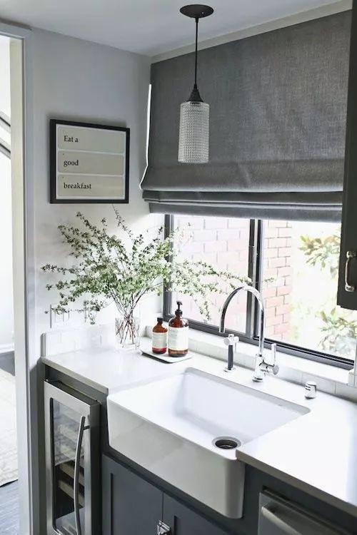 像是厨房里的小窗,一般用在洗手盆前的半窗,日式小清新和法式田园风的厨房都爱它。