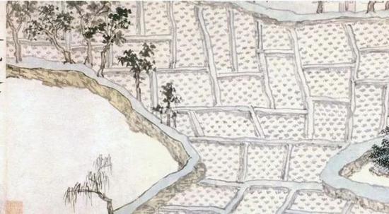 更让沈周感到不同寻常的,是大云庵“地浸一水中”的选址。在充满想象力的沈周眼里,四面的水流“环后如带”,将寺院环抱,“其势萦互一曲,如行螺壳中”。吴谚至今仍有“螺蛳壳里做道场”的说法,形容在逼仄局促的空间环境或者条件下依然别有洞天、游刃有余,沈周这里所赞叹的大概也是同样的意思。不过,对于沈周而言,仅仅赞叹景观的精巧显然不能尽显其才华。一句“尘海嵌佛地”,大云庵“宛在水中央”的独特地理位置便在沈周的笔下具有了深厚的意味,新的文化景观由此诞生。